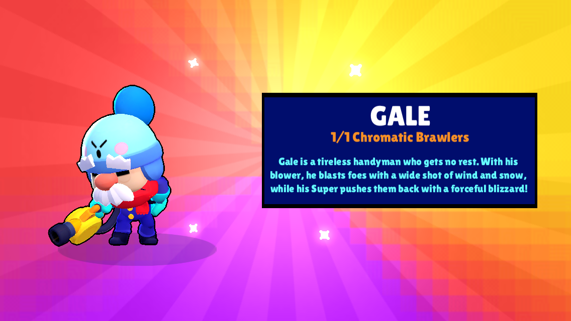 Alternatively the only other way to obtain Gale is by procuring brawl boxes full of his power points. The chance to unlock Chromatic Brawlers changes over Brawl Pass seasons. This game contains every brawler and every event including new stuff.